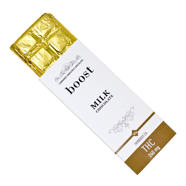 Boost Edibles THC Milk Chocolate brings you superior tasting chocolate bars made with real ingredients, lab tested Hybrid THC Distillate, and, our perfected dosage of THC, which is precise and reliable in every bite.